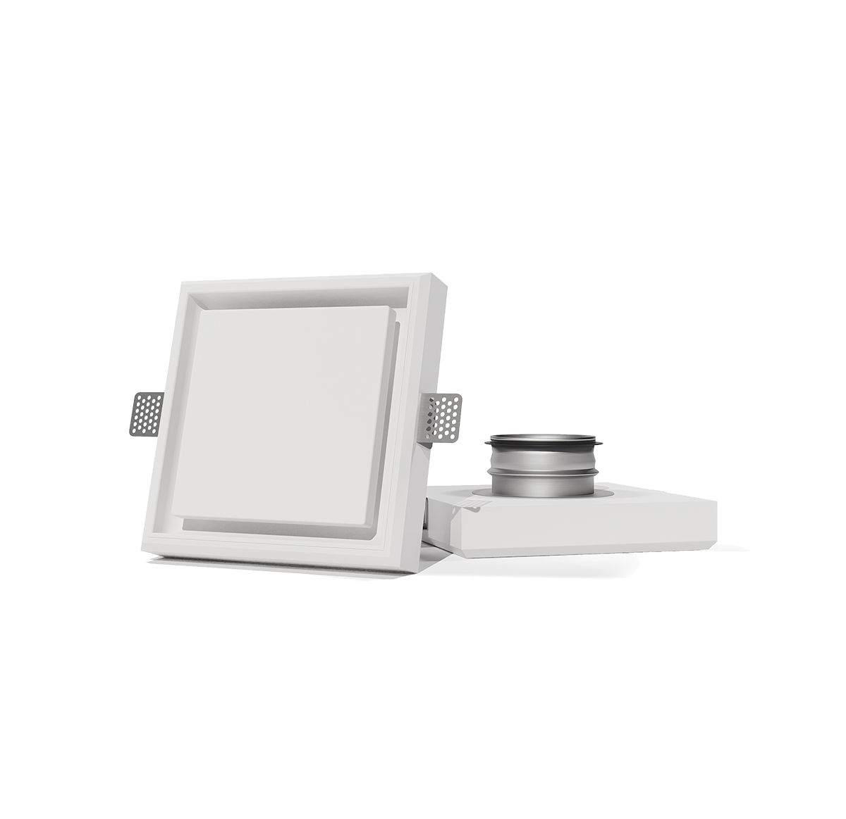 Дизайнерские диффузоры SECRET являются частью вентиляционной системы. Выполнены из гипсополимера, корпус диффузора монтируется в потолок или стену из гипсокартона, после покраски становится с потолком одним целым. Это поистине элегантное решение, сохраняющее функцию. Форма диффузоров позволяет принимать поток воздуха из вентиляционной трубы и плавно распределять его в помещение. Легко и герметично стыкуется с стандартными вентиляционными трубами диаметром 100, 125, 160 и 200 мм.